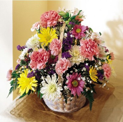 Canasta con margaritas, alstroemeria y follajes.Floreria Maui entrega flores en Queretaro, en Mexico y cualquier parte dElMundo.